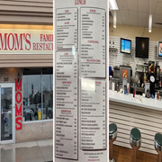Mom's Family Restaurant offers an extensive menu that caters to the whole family. Options range from hearty breakfasts featuring omelettes and hash browns, to classic diner lunch choices like sandwiches and burgers. Highlights include their specialty sandwiches, such as the Reuben, and comforting starters like chicken fingers and onion rings. Breakfast and brunch items like waffles and eggs benedict dominate the early menu, while lunch and dinner options prioritize homey favorites. The eatery also accommodates the younger crowd with a dedicated kids' menu. Desserts are not to be forgotten, with warm pies that many declare just like grandma used to make. The price range varies from affordable sandwiches at around $15 to more indulgent plates, which are still budget-friendly, making it easy to enjoy a meal without overspending.